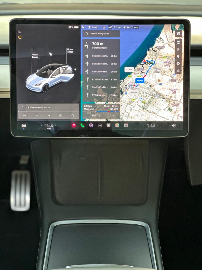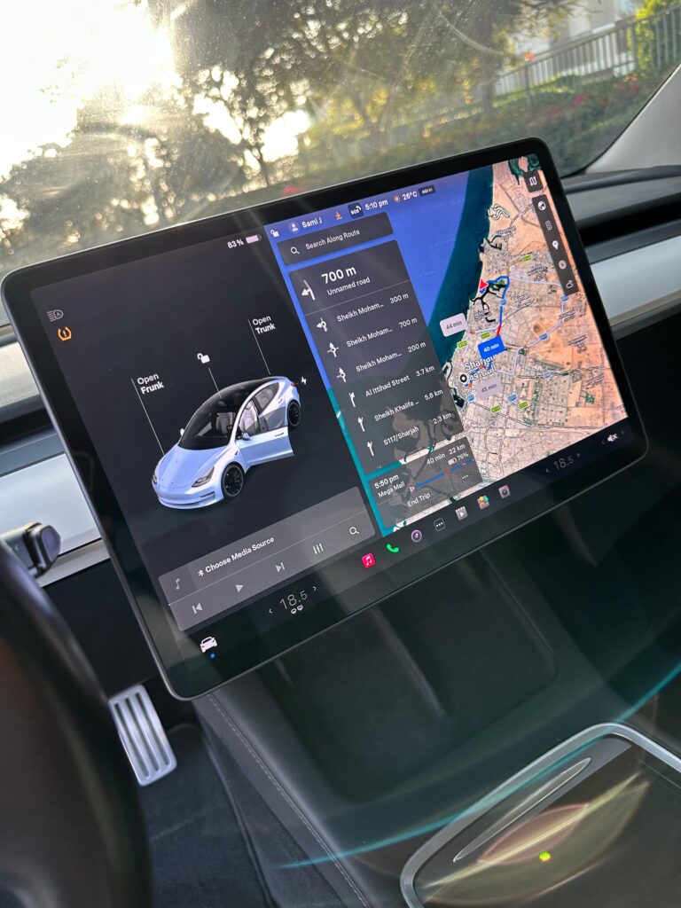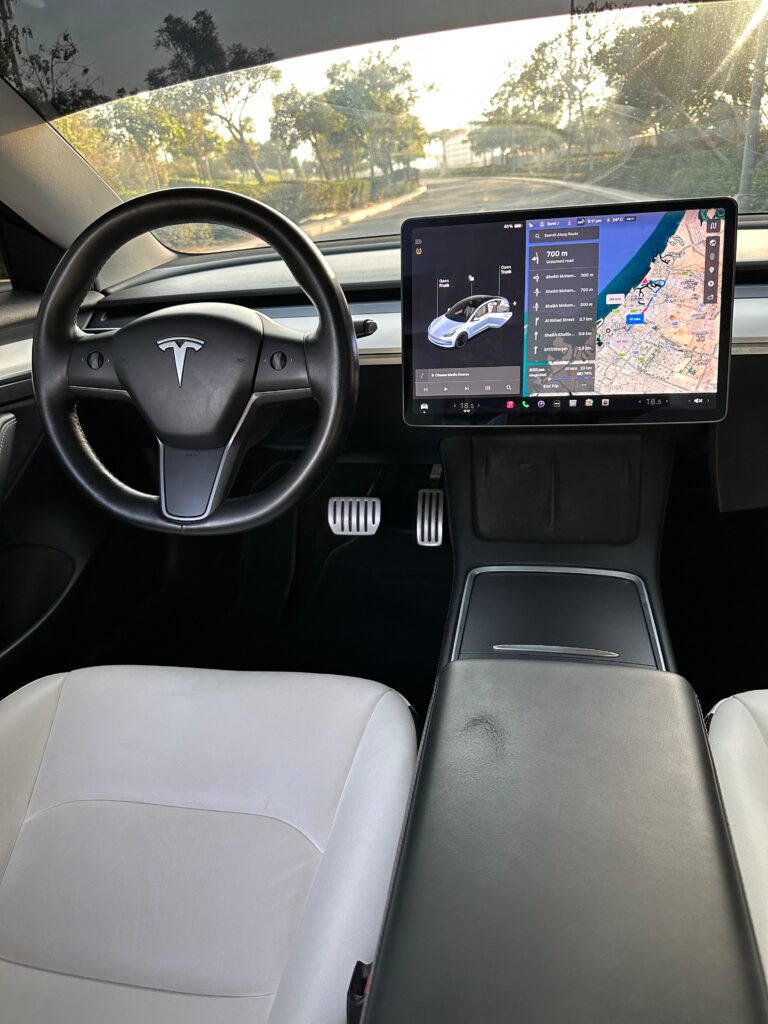 تسارع من 0 إلى 100 كم/س خلال 5.6 ثانية تقريباً ناقل حركة أوتوماتيكي كهربائي نظام قيادة ذاتية (Autopilot) مع مساعد السائق شاشة لمس مركزية قياس 15 إنش نظام ملاحة + بلوتوث + Apple CarPlay & Android Auto (دعم عبر التطبيقات) مقاعد جلدية كهربائية مع تسخين نظام تكييف أوتوماتيكي ثنائي المناطق أنظمة أمان متقدمة (مكابح الطوارئ التلقائية – مراقبة المسار – حساسات – كاميرات 360°)