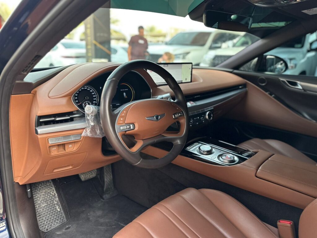 Exterior Design: Unparalleled elegance with the signature Genesis grille and quad LED headlights that give the car a commanding presence on the road.