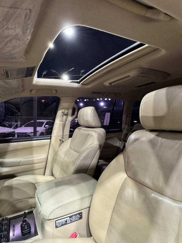 Leather seats , sunroof, refrigerator, fingerprint, heated and cooled seats, rear screen, rear air conditioning, 3 cameras, parking sensors, cruise control, radar , electric starter