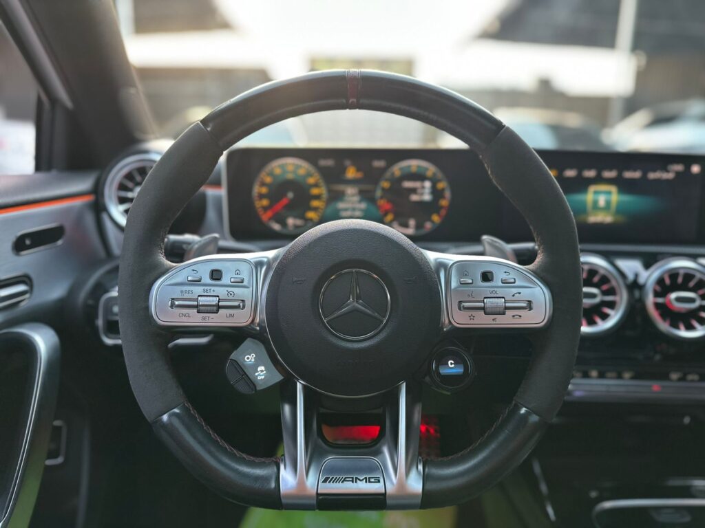 الأداء: محرك AMG سعة 2.0 لتر مع شاحن توربيني، يولد قوة حصانية مذهلة مع نظام دفع رباعي 4MATIC لثبات فائق على المنعطفات.