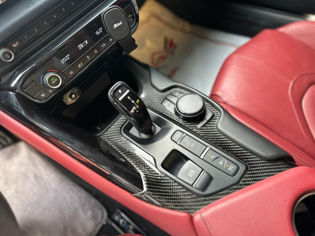 المقصورة الرياضية: مقاعد حاضنة من الجلد والشامواه (Alcantara)، مع لمسات من الكاربون فايبر تعزز روح السباق.